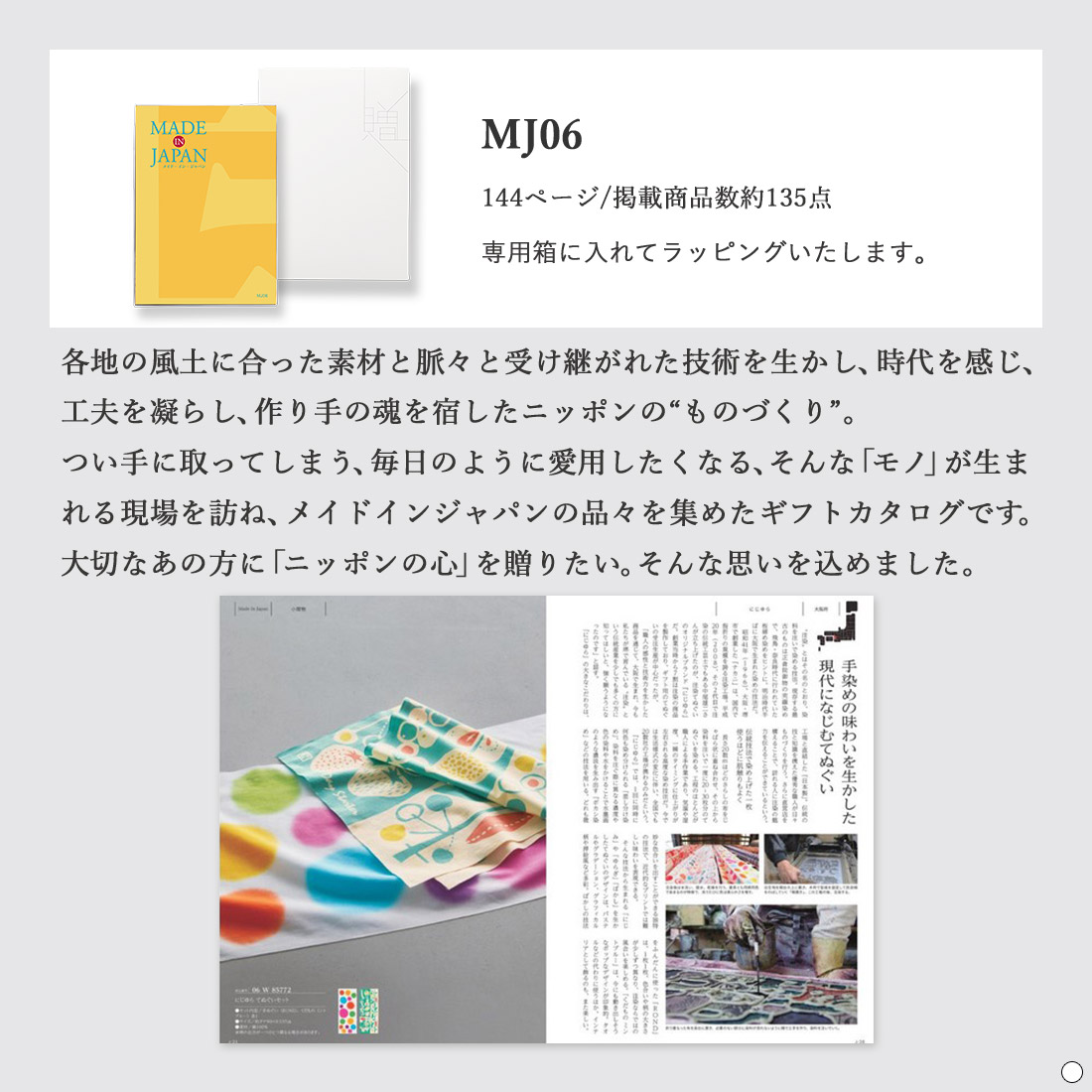 | セット内容 | メイドインジャパンカタログギフト「MJ06」コース1冊、風呂敷×1枚 |