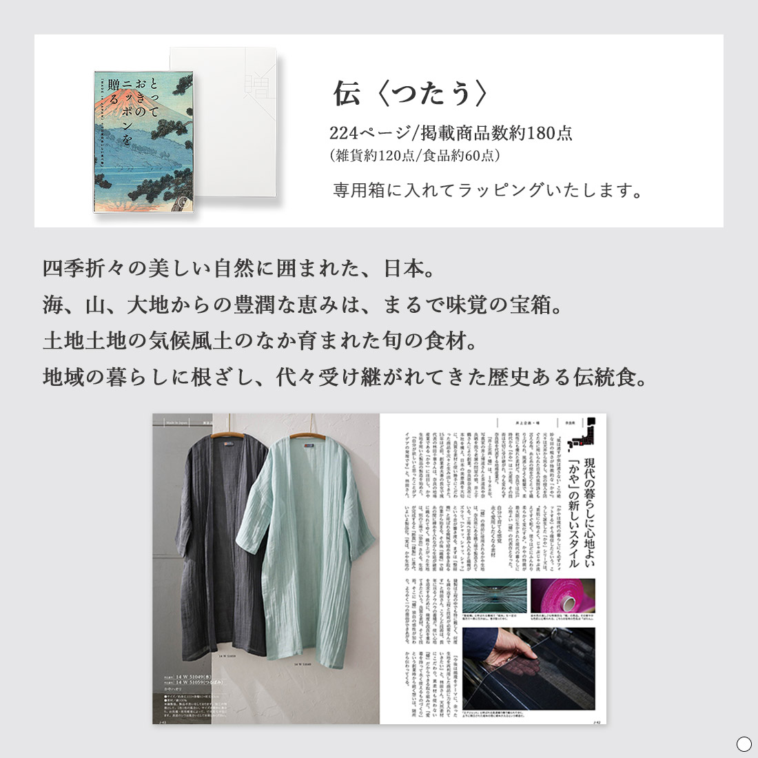 | 掲載商品数等 | 224ページ/掲載商品数約180点(雑貨約120点/食品約60点) |