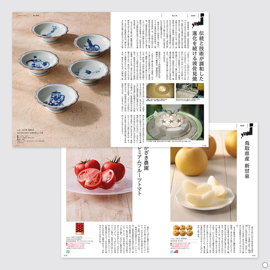 | 掲載アイテム例 | コーヒードリッパー / 剪定鋏 / 銅製おろし器 / のせ櫃 / キッチンハサミ / 蚊取り線香セット / つげブラシ / 化粧筆 / パールネックレス / 肥後象嵌ネックレス / ベルト / 革小物 / Tシャツ / かや生地製品 / 三河木綿製品 / ショルダーバッグ / ポシェット / 帆布トートバッグ / キッズ下駄 / スカーフ / 老眼鏡 / 青森ヒバ製品 / ルームシューズ / 今治タオル / おじゃみ座布団 / 炭わた枕 / 阿波しじら織 / 棕櫚製品 / い草インテリアマット / 靴べら / ダストボックス / デスクライト / 万年筆 / 木製花器 / 地球儀 / 奈良墨 / 積み木 / 木製おもちゃ / ベビー用枕 / 洋服ブラシ / 洗濯用洗剤 / ティッシュボックス / テーブルランナー / ロックグラス / 豆皿 / 木製マグカップ / 箱根寄木細工 / 曲げわっぱ / 煎茶碗 / 酒器セット / デザートボウル / ティーポット&カップセット / 大鉢 / 高台小皿揃 / 急須 / すり鉢 / 琺瑯ミルクパン / ごはん炊き土鍋 / まな板 / 包丁 / 卵焼き器 / フライパン / 卓上鍋 / 豆皿 / 錫製盃 / 備前焼 / 萩焼 / 萬古焼 / 砥部焼 / 益子焼 / 有田焼 / 波佐見焼 / 美濃焼 / 耐熱ガラスコンテナ / ステンレス茶筒 / 調味料入れ / カッティングボード / 八重山みんさ織 / 蚊やり / 生鮮品 / 惣菜 / 保存食 / 調味料 / 菓子 / 飲料 / 酒 / 器と道具 |