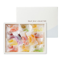 旨味がたっぷりつまったフルーツの果汁と果肉を贅沢に使った一粒ゼリーは、宝石のような美しい色と可愛い形が特徴。歯切れのよい絶妙な食感にもこだわり、あんず、パイン、いちご、りんご、青うめ、ぶどうなど15種の味わいが楽しめます。